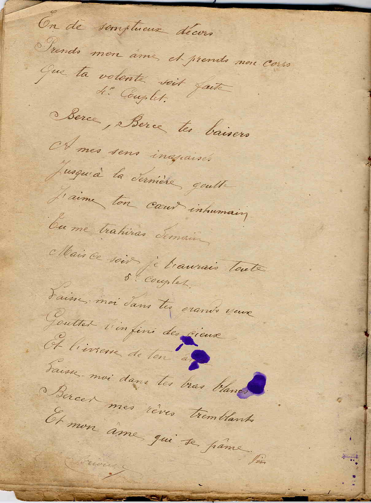 Extrait du livret de chansons de Jean Baptiste BLANCHARD :